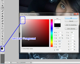 dilakukan dengan menggunakan menu Brush dan Set Color Foreground